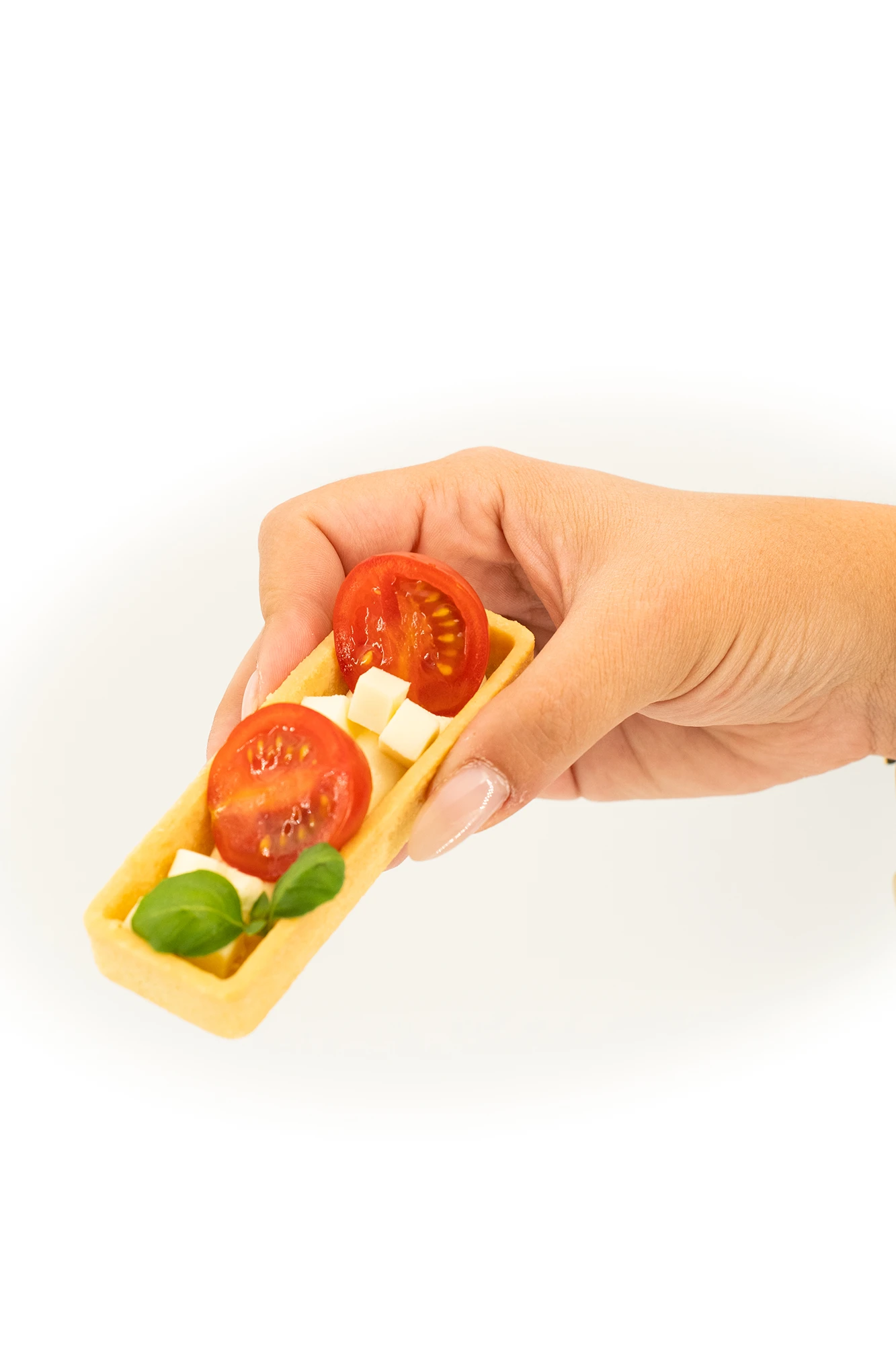 Un équilibre frais et généreux entre la douceur du fromage, l’acidité de la tomate et la puissance du basilic. Colorée, simple et efficace, L’Italien évoque en une bouchée l’essence de la cuisine méditerranéenne : ensoleillée, parfumée et irrésistiblement gourmande. Une bouchée végétarienne idéale, parfaite pour agrémenter un cocktail aux accents du sud, ou ouvrir une réception pleine de fraîcheur.