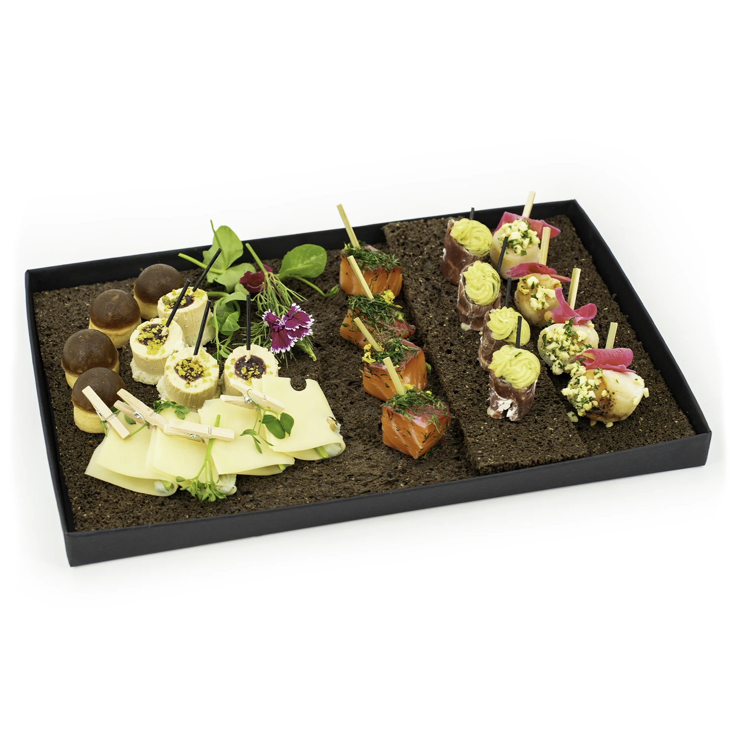 Toutes nos pièces apéritives et entrées froides sont conditionnées en format « jetable » réutilisable et recyclable.