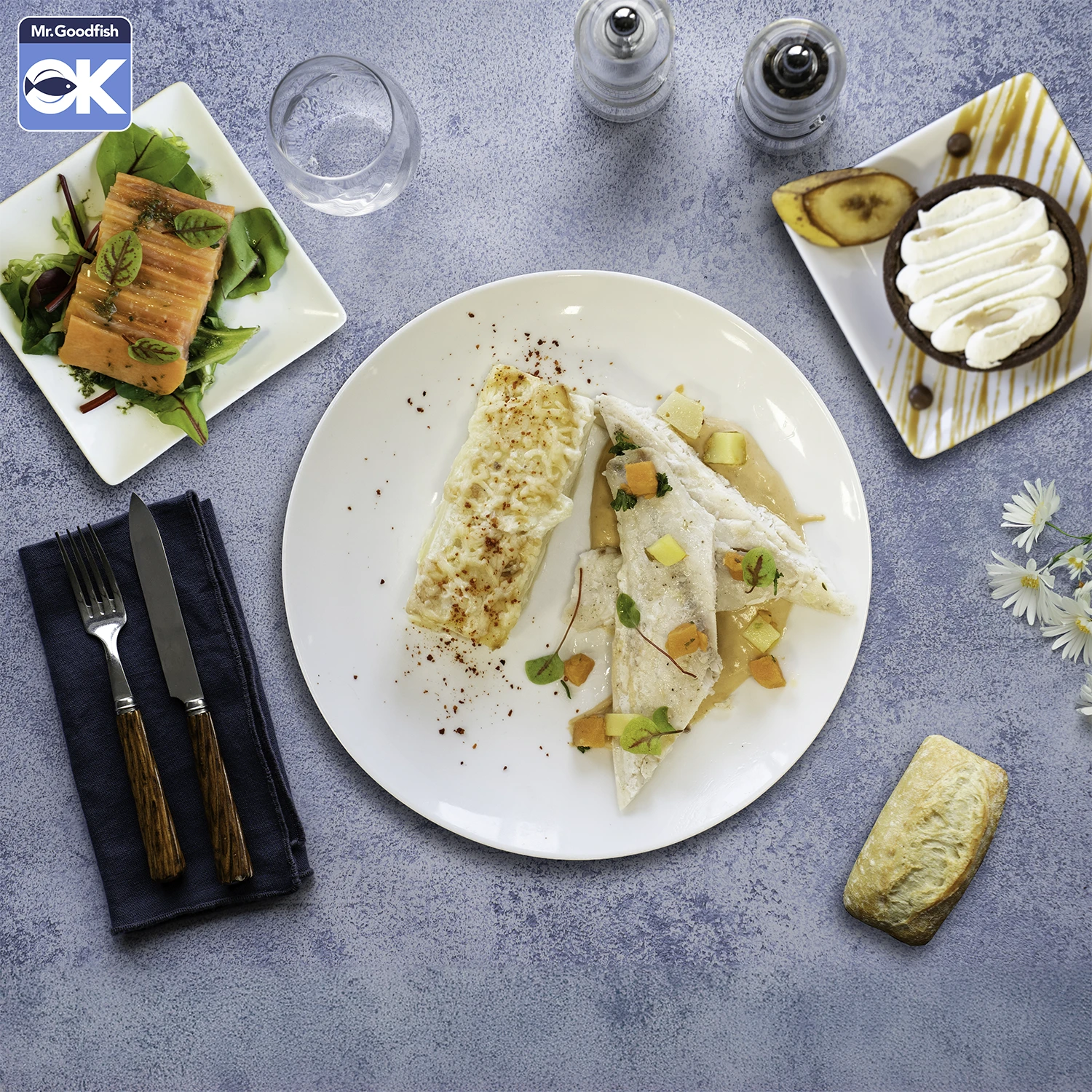 Le plateau repas poisson “Supernova” de la gamme “Les Prestiges” est composé des préparations suivantes :