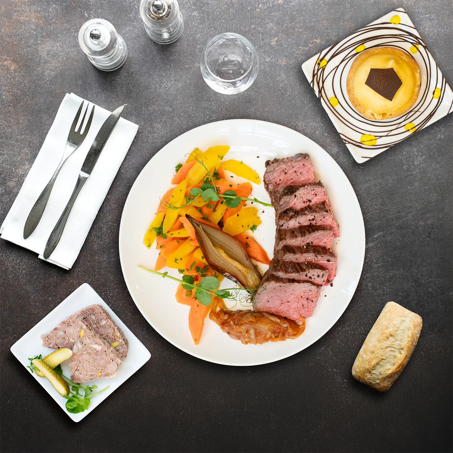 Une gamme intermédiaire offrant un repas complet “Entrée, Plat, Fromage, Dessert” pour un déjeuner sophistiqué.