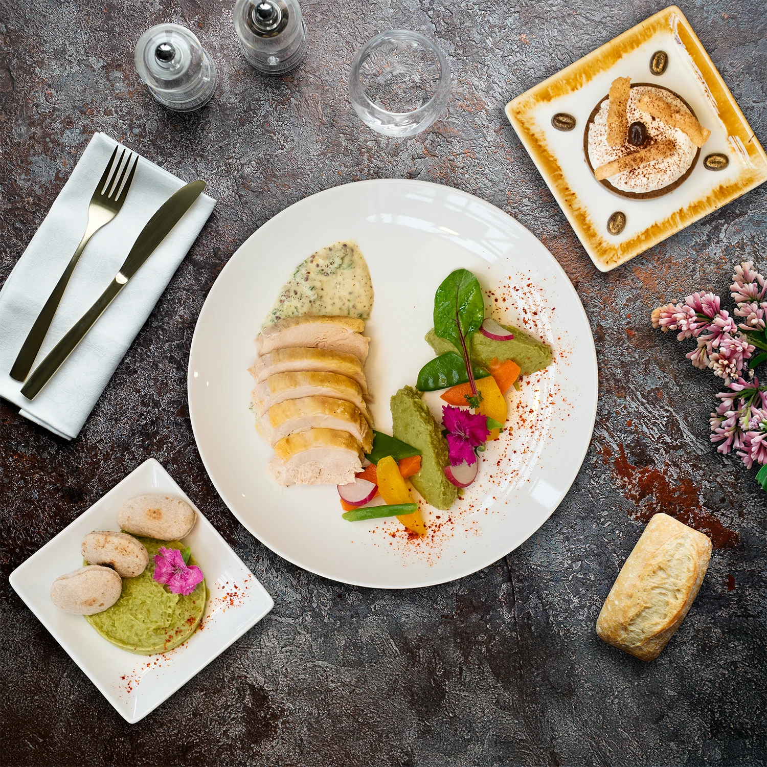 Une gamme intermédiaire offrant un repas complet “Entrée, Plat, Fromage, Dessert” pour un déjeuner sophistiqué.