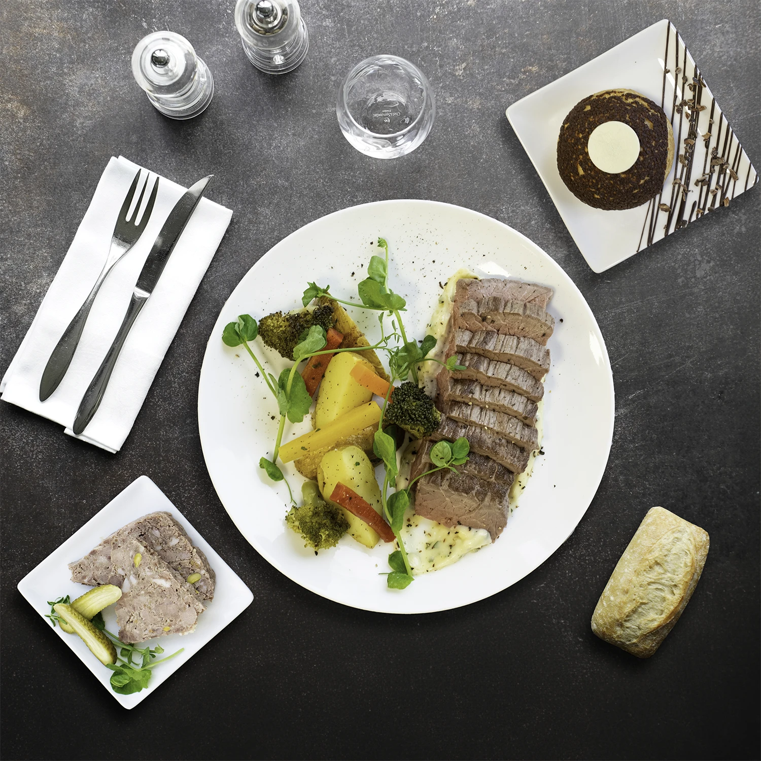 Une gamme intermédiaire offrant un repas complet “Entrée, Plat, Fromage, Dessert” pour un déjeuner sophistiqué.
