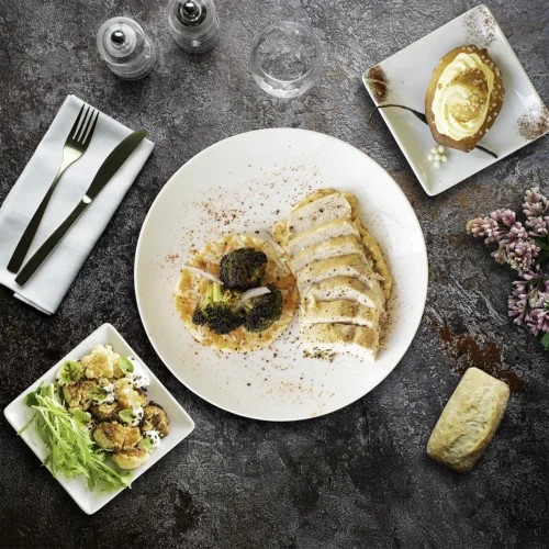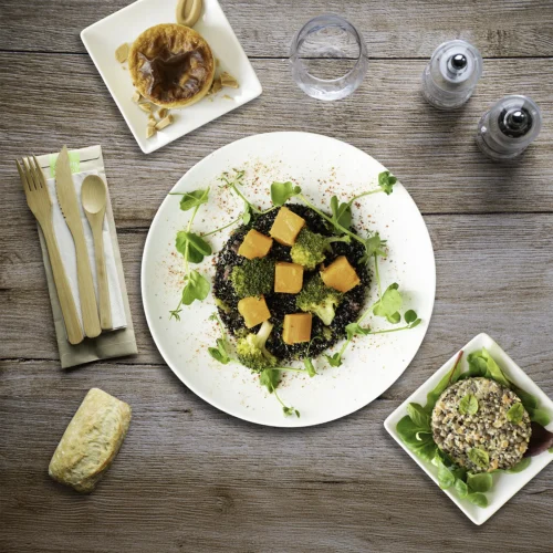 22 choix culinaires en 3 gammes, avec une offre de plateaux repas variée : viande, poisson, végétarien, vegan, sans gluten, sans lactose :