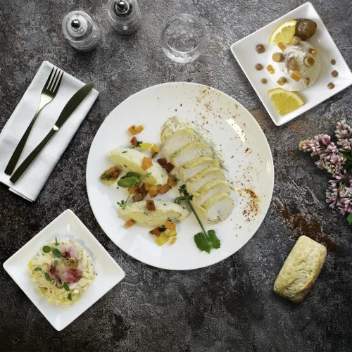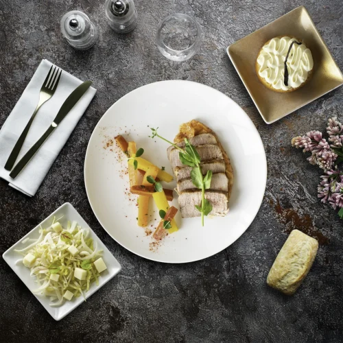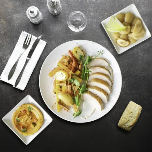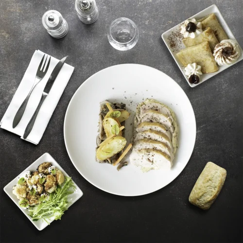 • Les Bistrots Chics : 25,00€ HT Une gamme intermédiaire complète "Entrée, Plat, Fromage, Dessert" qui marie élégance et gourmandise pour un déjeuner à la fois sophistiqué et décontracté.