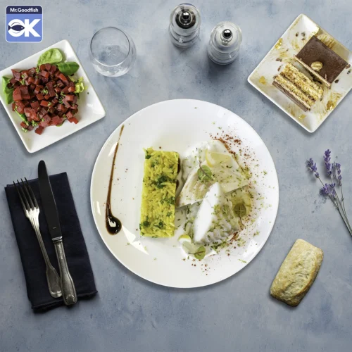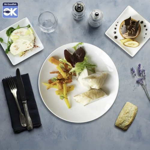 • Poisson : la majorité de nos plateaux repas poisson sont estampillés "Goodfish", c'est-à-dire que ces plateaux contiennent des produits de la mer, issus d'une pêche durable, respectueuse des écosystème marins et ne menaçant pas la longévité des espèces s'y trouvant.
